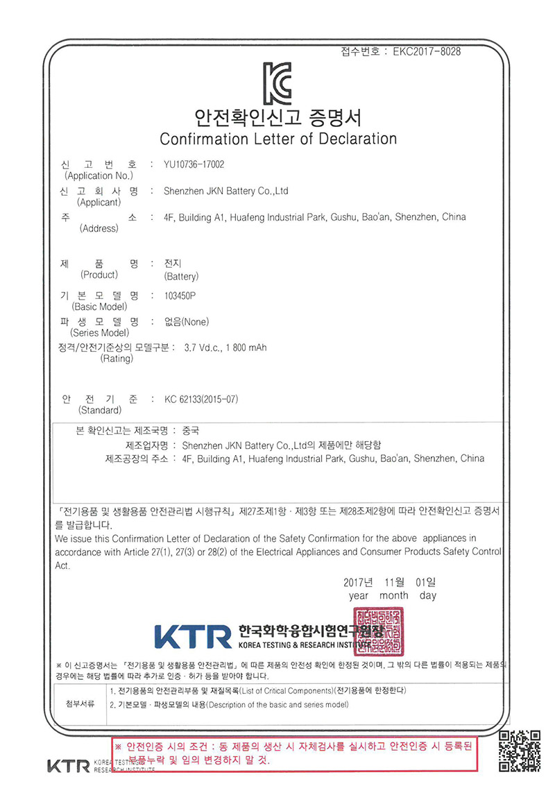 金凱能致力于研發(fā)制造高品質(zhì)的定制化鋰電池組,堅(jiān)持以優(yōu)異的產(chǎn)品、可靠的質(zhì)量、高效的服務(wù),滿足或超越客戶的需求,樹(shù)立金凱能品牌形象。金凱能為保證產(chǎn)品質(zhì)量,引進(jìn)完善的電池檢測(cè)設(shè)備,采用現(xiàn)代化管理體制,誠(chéng)信經(jīng)營(yíng),發(fā)展創(chuàng)新。 同時(shí)與SGS、北測(cè)等檢測(cè)機(jī)構(gòu)保持良好合作確保產(chǎn)品滿足相關(guān)認(rèn)證和使用需求。